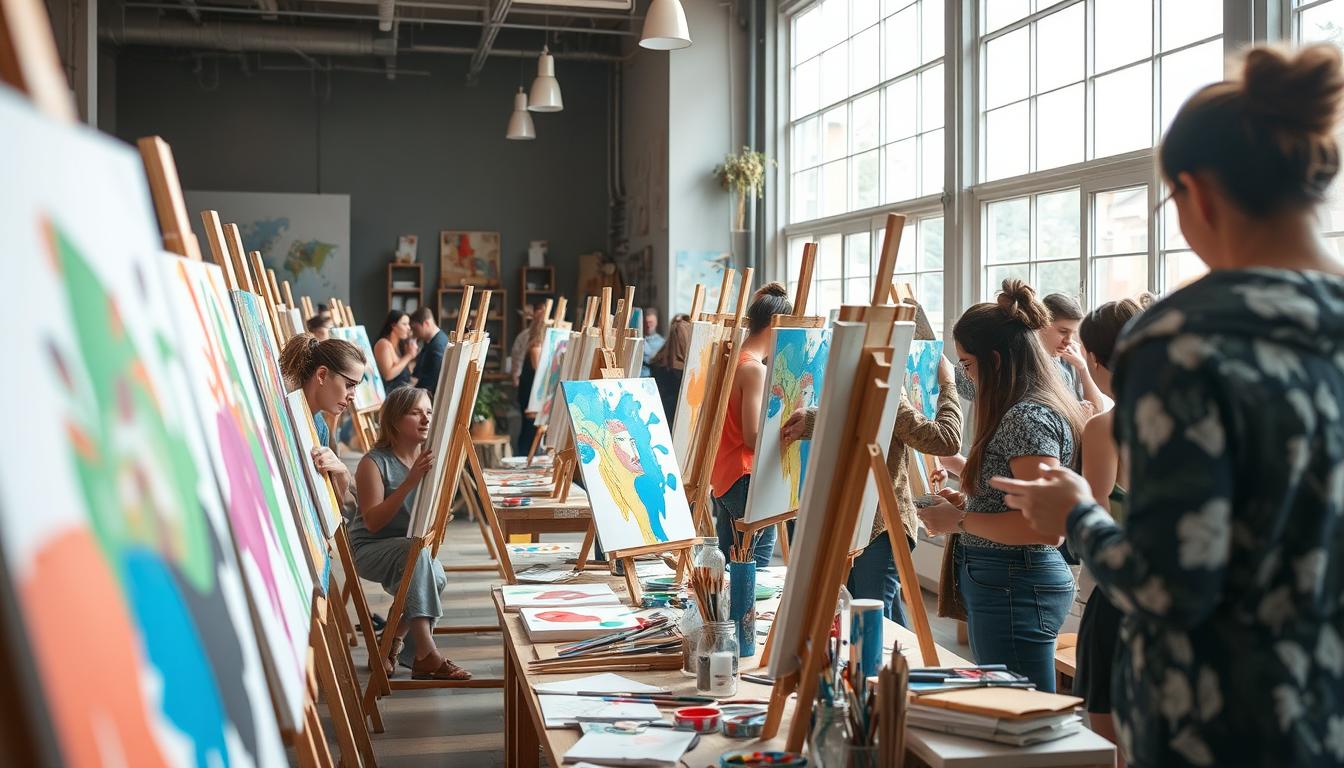 Art workshops are key to lively local art scenes. They let people share their love for art, learn new things, and show off their skills. Events like art markets, gallery shows, and outdoor murals unite people from all walks of life. They celebrate how art can change and improve our world.